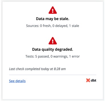 - Deep links you into dbt Explorer where you can further dive into upstream data issues.